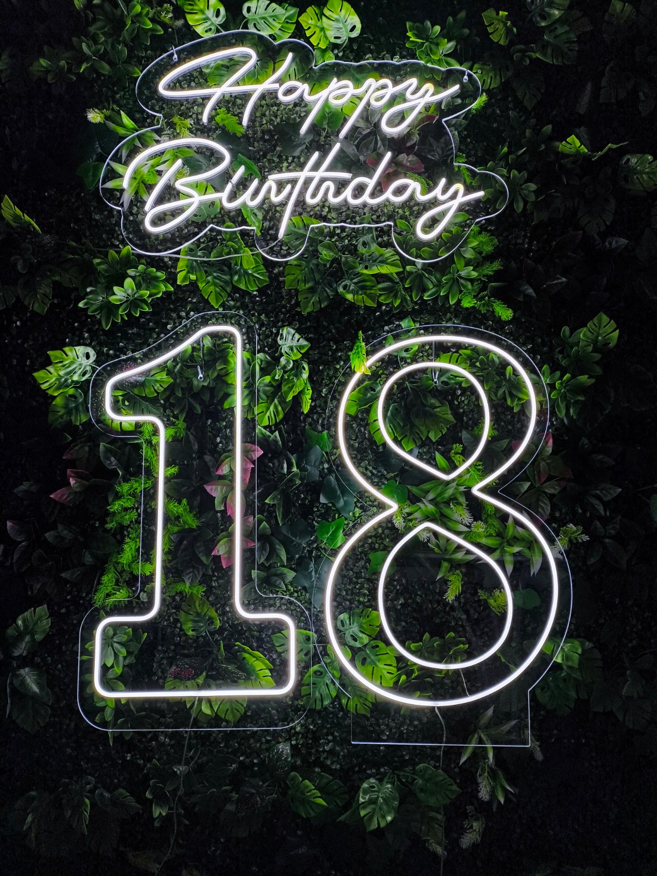 Led Neon broj 1, broj 8 i Neon natpis srećan rođendan Latinica